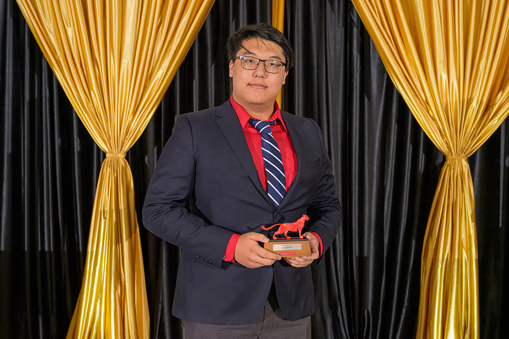 William Yao was named the recipient of the Puma of the Year award at the 2025 Purrcy’s, the college’s student leadership awards event.